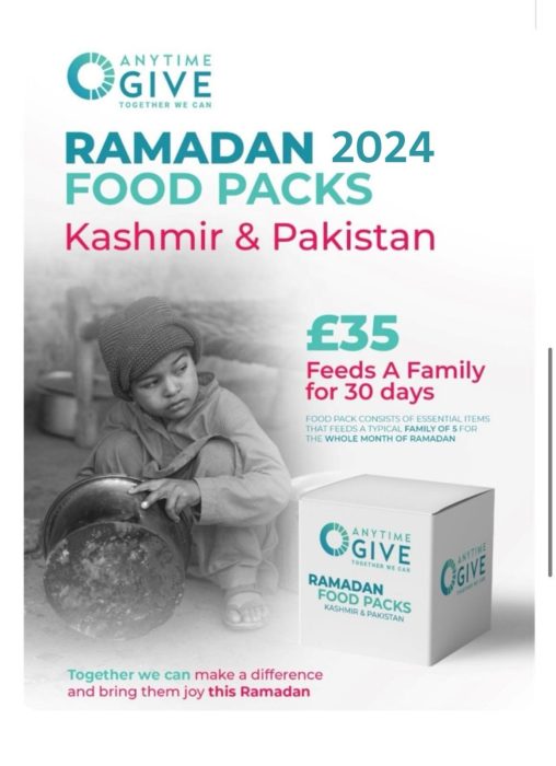 The Ramadhan food packs cost only £35, which will feed a family throughout this blessed month, In’sha’Allah.